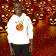 This trendy and sassy orange and black Jack O Lantern baby bodysuit has a happy smile on his face, and Boo! written above. You can change the text on the front and back to a name or message of your choosing. The shirt comes in children and adult sizes and lots of different colors.