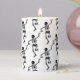 This pillar candle is shown with a Halloween dancing skeletons print.