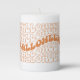 This eye-catching Halloween design features a bold and playful repetition of the word "HALLOWEEN" in a wavy, retro-inspired font. The text is arranged in multiple layers, creating a visually dynamic pattern that draws the viewer in. The central word is highlighted in a solid, vibrant orange, making it stand out from the surrounding text, which is outlined in the same color. The wavy typography adds a sense of movement and energy, perfectly capturing the spooky and fun spirit of Halloween.