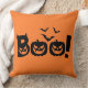 This accent pillow is shown with a scary black Boo! Halloween print.