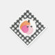 Halloween happy birthday napkins with pink pumpkins and black plaid.