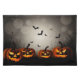 Halloween placemat is shown with a scary pumpkins print.