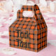 Add festive flair to your spooky celebrations with this black and orange Halloween plaid trick or treat favor box. Perfect for trick-or-treat parties, fall birthdays, or rustic autumn events. Sturdy, stylish, and easy to personalize!