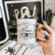 A vintage apothecary poison label adorns this great Halloween Poison Mug . Perfect for Halloween or makes a great witchy gift. Durable ceramic mug in always fashionable black and white color. High quality printing makes it an appreciated gift to every true coffee or tea lover.