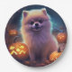 Halloween Pomeranian With Pumpkins Scary Paper Plates