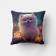Halloween Pomeranian With Pumpkins Scary Throw Pillow