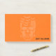 Post it note shown in an orange color with a festive Halloween skull and bats print.