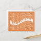 This eye-catching Halloween design features a bold and playful repetition of the word "HALLOWEEN" in a wavy, retro-inspired font. The text is arranged in multiple layers, creating a visually dynamic pattern that draws the viewer in. The central word is highlighted in a solid, vibrant orange, making it stand out from the surrounding text, which is outlined in the same color. The wavy typography adds a sense of movement and energy, perfectly capturing the spooky and fun spirit of Halloween.