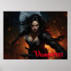 Poster is shown with a scary haunted Halloween print of a vampiress.