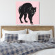 Premium Wrapped Canvas wall hanging decor printed with a Halloween Prowling Black Cat Silhouette Drawing hand drawn graphic artwork drawing design illustration by TheFabricSeal print on demand shop at Zazzle.com #ZazzleMade ©️Original. https://www.zazzle.com/store/thefabricseal