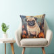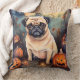 Halloween Pug With Pumpkins Scary Throw Pillow