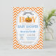 Pumpkin Baby Shower Invitation. Fall Autumn Baby Shower Invitation. Boy Baby Shower invite. A Little Pumpkin is on the way. Orange and Blue Chevron. For further customization, please click the "Customize it" button and use our design tool to modify this template.