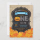Halloween Pumpkin Boy 1st Birthday Blue Burlap Invitation