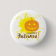 Halloween Pumpkin button features a smiling orange Halloween Pumpkin (Jack-o'-lantern), against splashed yellow paint in the background, with the text 'Happy Halloween' at the bottom. Perfect for Halloween parties. © Morning 6