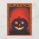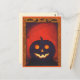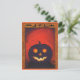 A glowing ‘Jack-O-Lantern’ sits on a bed of straw among the spider webs – a perfect setting for Halloween night! This postcard would make a great invitation for a Halloween party.