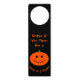 Halloween pumpkin door hanger. Text and background color can be customized.