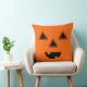 This festive Halloween throw pillow is shown in a black and orange pumpkin face print.