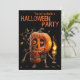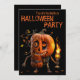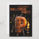 A halloween funny pumpkin jack-o'-lantern in the shape of the letter "P" holding a lamp with a flame.