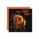 A halloween funny pumpkin jack-o'-lantern in the shape of the letter "P" holding a lamp with a flame.