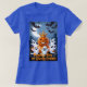 A fun and spooky T-Shirt featuring a funny pumpkin king wearing a crown, surrounded by playful ghosts and bats flying around under a crescent moon. Perfect for Halloween enthusiasts and those who love a touch of whimsy in their wardrobe.