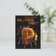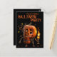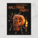 A halloween funny pumpkin jack-o'-lantern in the shape of the letter "P" holding a lamp with a flame.