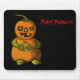 The design shows a handpainted pumpkinman on a black background with the writing "Happy Halloween" on it. You can easily change the colour of the background and replace the writing with your own words by clicking on the "customize it" button.
