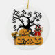 Halloween Pumpkins, Black Birds and Pug Dog Ceramic Ornament