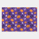 Halloween pumpkins ghosts bats fun purple pattern wrapping paper sheets