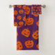 Halloween Pumpkins on Purple Background Pattern Bath Towel Set