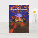 Greeting card with my original artwork of two laughing pumpkins on Halloween night with a full moon and fall leaves. "Happy Halloween" on the front and my customizable verse inside.