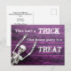 This isn't a trick, our house party is a treat. A cute halloween housewarming party postcard invitation or change of address card for a family that has moved in the month of October. A funny skeleton on a spooky purple wall to welcome people to your new home for a fun gathering.