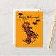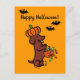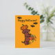 Halloween Red Smooth Haired Dachshund Postcard for Doxie Fans! Unique and funny Dog Art painted by Naomi Ochiai from Japan. An adorable Red Smooth Haired Dachshund with Pumpkin Hat is saying Trick or Treat!