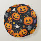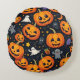 Add a playful touch of Halloween fun to your space with this adorable round pillow! Featuring a delightful design of smiling jack-o'-lanterns, friendly ghosts, and whimsical stars on a dark background, this pillow is perfect for brightening up your living room, bedroom, or any cozy corner. The vibrant colors and charming characters will bring a cheerful Halloween vibe to your home decor. Whether you're decorating for a Halloween party or just want to add some seasonal flair, this round pillow is sure to bring smiles. Happy Halloween!