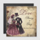 This Halloween wedding invitation features a skeleton couple, beautiful flowers, and a cemetery set against an aged paper background. The invitation blends romance, elegance, and spookiness into a unique and captivating design.