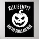 Halloween black and white Jack-o-lantern pumpkin face with personalized text quote: “Hell is empty, and the devils are here.” – William Shakespeare (The tempest).