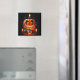 The Halloween pumpkin is a classic symbol of the holiday. It is typically a large, round fruit with a bright orange color. The pumpkin has a thick, tough skin and a hollow interior. Its top is usually cut off and the seeds and pulp are removed to create a cavity for carving. The pumpkin is then carved into various designs, often depicting spooky or funny faces, and a candle or light is placed inside to create a glowing effect. These carved pumpkins, known as jack-o'-lanterns, are commonly displayed on doorsteps or windowsills during Halloween to add a festive and eerie atmosphere to the surroundings.