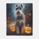 Halloween Schnauzer With Pumpkins Scary Fleece Blanket