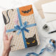 Halloween seamless pattern with black cat and ghos wrapping paper