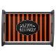 This Halloween serving tray is shown in a black wood with a black and orange color striped pattern.