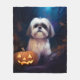 Halloween Shih Tzu With Pumpkins Scary Fleece Blanket
