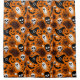 A orange colored background with scary ghosts, skulls, bats and pumpkings