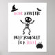 Bone appetite Help yourself to a treat, says a spooky cute pink and black front door or porch candy sign, with a witches hat, a batty bat, a bubbling cauldron and a dancing skeleton. A cute and spooky Trick or Treat and Happy Halloween candy sign for the porch, front door for when you can't be there to hand out treats on the spookiest night of the year. Or perfect for a candy or loot bag table at a Halloween costume party.