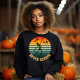 "Make a statement this Halloween with our 'Never Better' sweatshirt, where a spirited skeleton dances against a nostalgic sunset. The hauntingly beautiful scene is completed by a swarm of bats in the background, creating an atmosphere that's both eerie and enchanting. Don't miss the chance to show your Halloween spirit with this one-of-a-kind design."
