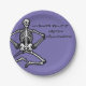 Party paper plate shown in purple with a Halloween skeleton print. Shown is 7" size. Customize this plate or buy as is.
