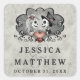 Halloween Skeletons Gray Black Names Wedding Date Square Sticker