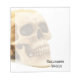 This is a halloween skull notepad with brown natural boned skull with customized text.