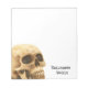 This is a halloween skull notepad with brown natural boned skull with customized text.