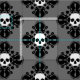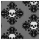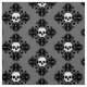 Fabric for Halloween in gray, black, and white. This features an elegant skull damask pattern in it.