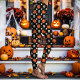 Halloween Skulls, Pumpkins, and Flowers Black Leggings