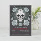Plain white envelopes are included with paper invitations and will come to fit the invitation size you select. If you don’t need the envelopes, you may choose to not receive them by selecting the dropdown below "Envelopes" and choosing "None." If you’d like to have a design on your envelopes, you can browse all of these available envelopes to find the design that complements your Halloween Skulls Roses Party Customize Invitation.